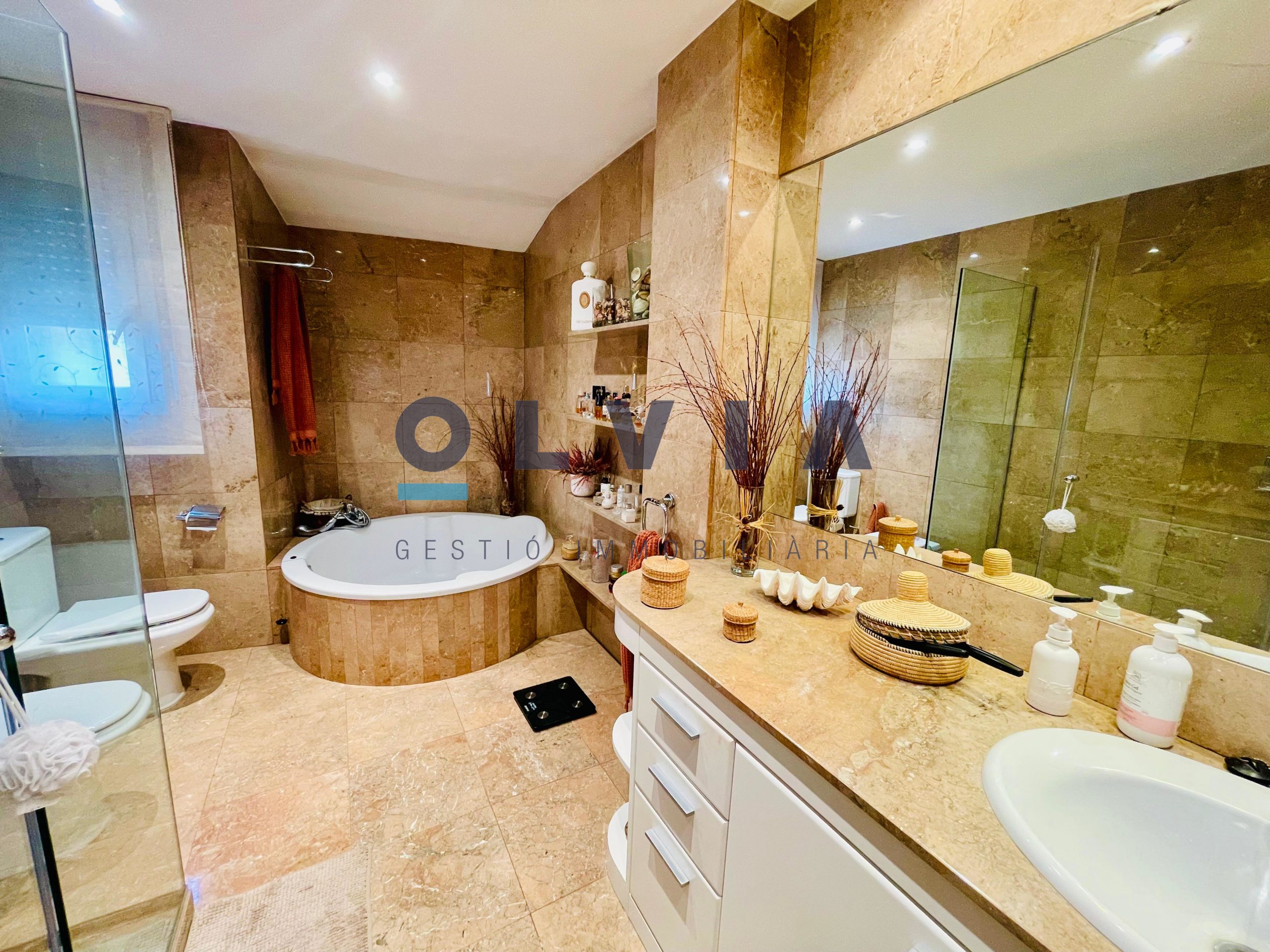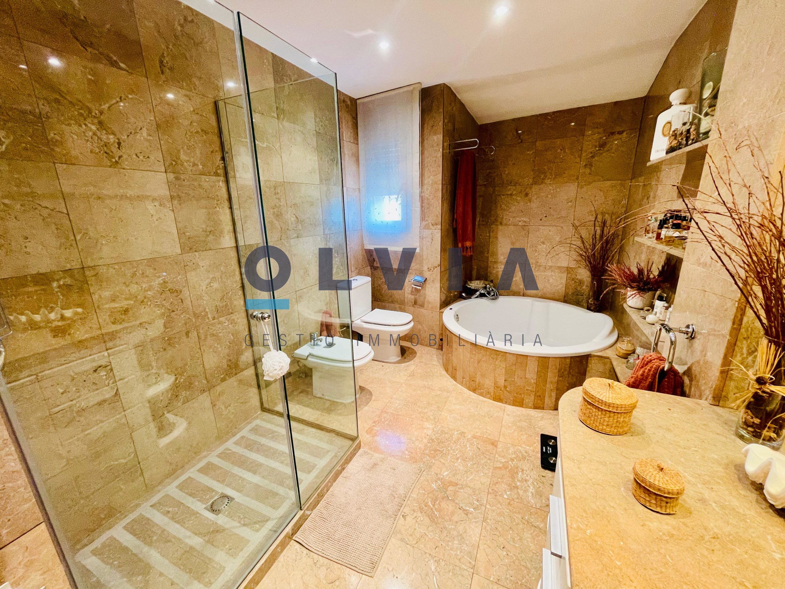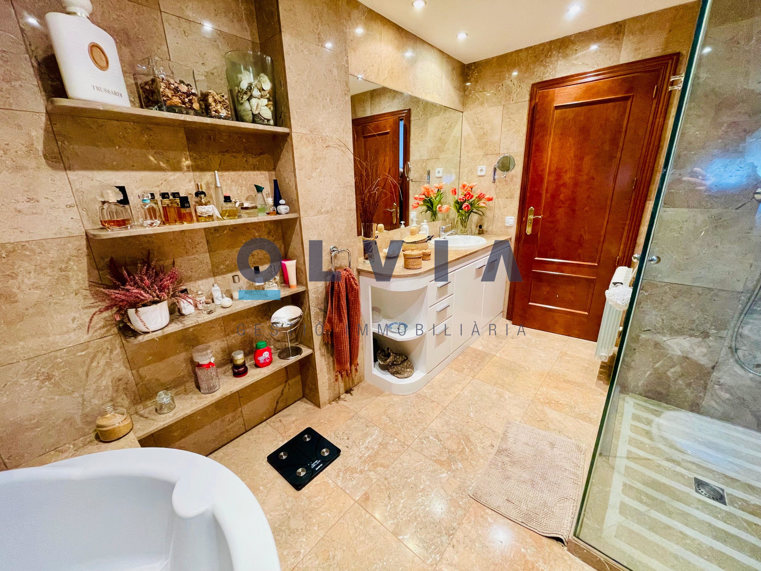 1ª PLANTA: 4 habitaciones, todas ellas dobles de 17, 13, 12 y 12m². La principal es en suite con bañera redonda y ducha. Todas ellas tienen salida a 2 terrazas de 28 y 20m². Encontramos otro baño completo con plato de ducha para dar servicio a esta planta.